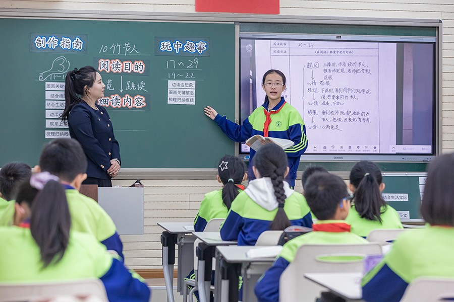 六年级的同学们在赵雨萌老师的引导下开展项目式学习,借助《竹节人》这一课总结阅读策略,制作《古韵玩具坊》宣传手册。