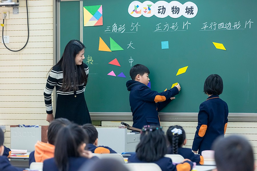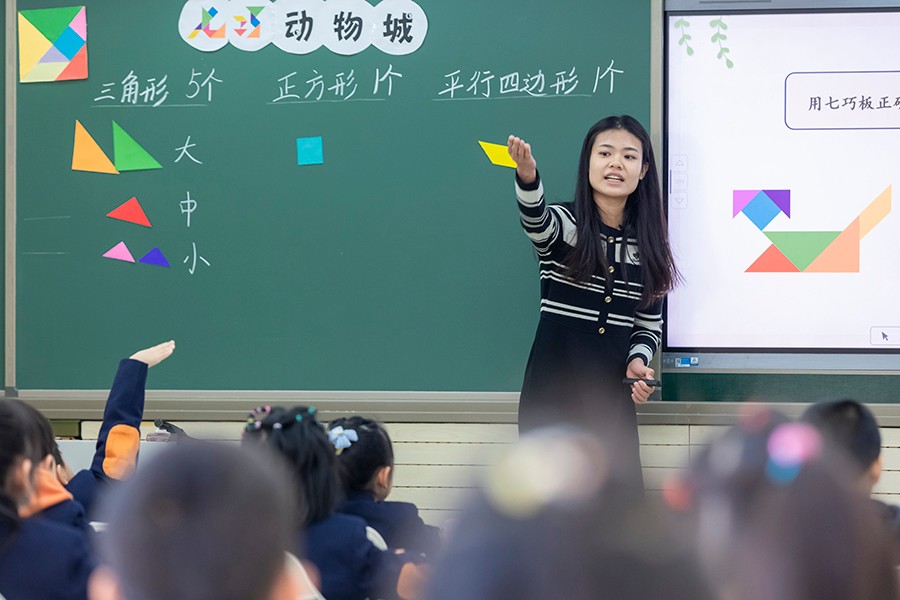 同学们在欢声笑语中拼出一个又一个图形,既锻炼了动手能力也锻炼了动脑能力,不仅让孩子们在认识图形的同时享受学习的乐趣,还培养了他们的多项能力。