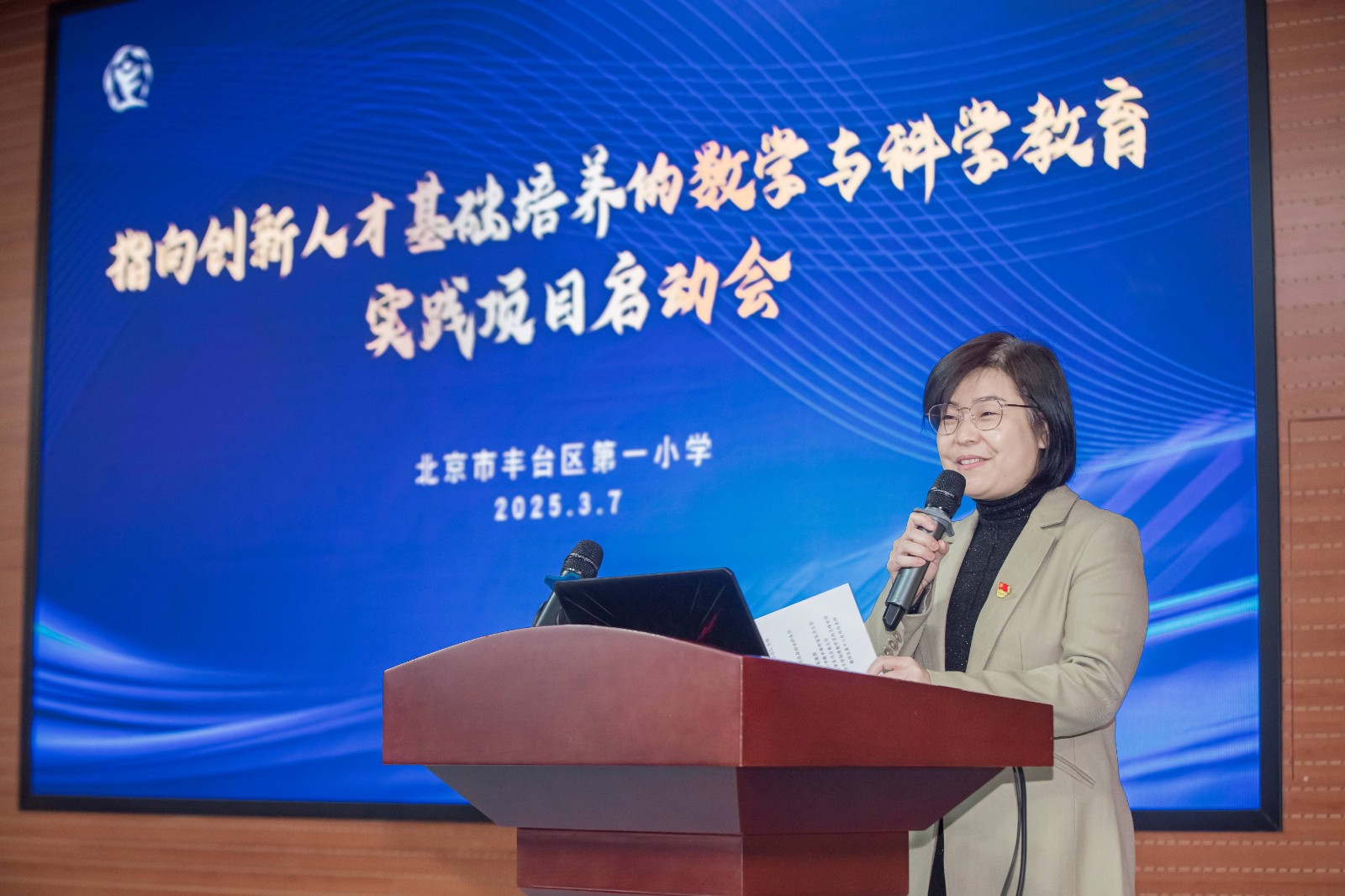 3 月 7 日,丰台一小启动意义深远的《指向创新人才基础培养的数学与科学教育实践项目》,为培育未来创新人才筑牢根基。出席此次活动的有首都师范大学卢慕稚副教授、北京教育科学研究院小学数学教研室张丹主任、北京教育学院数学系冯启磊主任、北京教育科学研究院中学物理教研员张玉峰老师、教师发展中心杜玲玲老师、海淀教师进修学校原小学数学教研室孙京红主任、北京教育学院丰台分院小学科学教研员姚森森老师、小学数学教研员漆敏老师,以及北京市学习科学学会秘书处马昕玮老师。