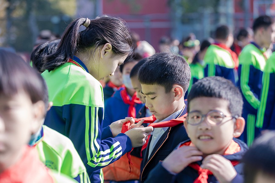星星火炬队旗指引方向,鲜艳的红领巾见证成长。11 月 3日上午,丰台一小的操场上队旗飘扬、队歌嘹亮,以“红领巾在召唤”为主题的二年级新队员入队仪式正在举行。