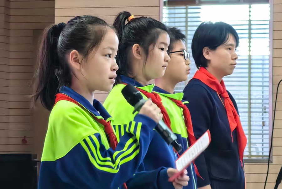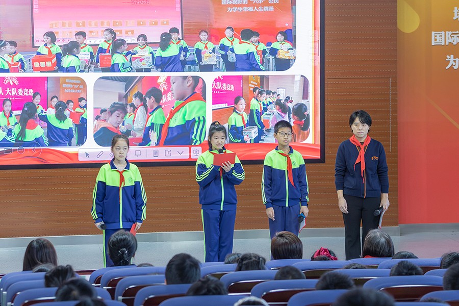 随后,新一届大队委集体亮相,他们依次进行自我介绍并阐述未来工作思路,发表了掷地有声的“履职宣言”,“我将以身作则,服务同学”、“我会用心做好每一件事,为少先队增光添彩”……队员们稚嫩的声音中透着坚定,昂扬的精神风貌充分展现了少先队小干部的责任与担当,现场响起阵阵掌声。