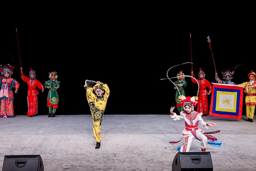 第三篇章为新编京剧板块,小花蕾京剧社团始终坚持“守正创新”,以原创京剧激发同学们对传统文化的热爱,本场演出精选我校原创儿童京剧《生肖荟》,该剧以中国传统文化中十二生肖的故事为创作灵感,用京剧的声腔韵律,讲述中国故事,传承文化基因,绽放国粹之花。