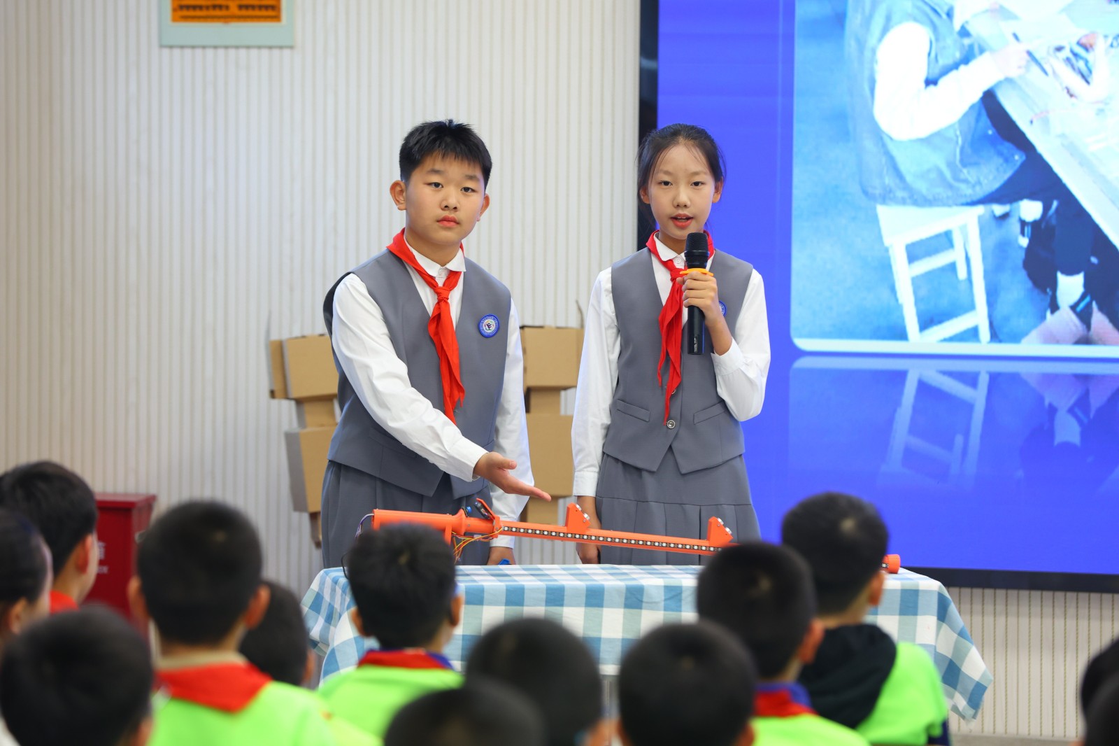 活动的高潮莫过于创新作品的发布环节。孩子们带着自己的创新作品,自信满满地走上舞台,向在座的嘉宾和观众们展示他们的智慧结晶。